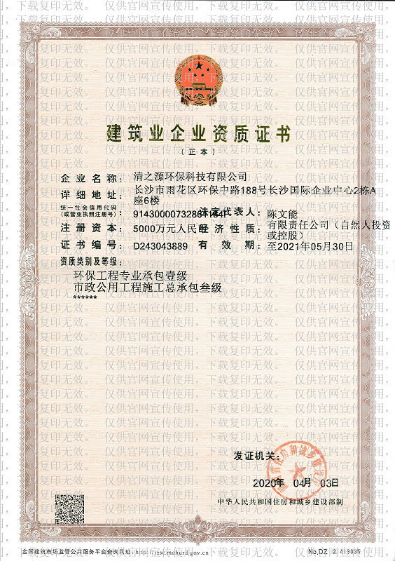 環(huán)保工程專業(yè)承包壹級(jí)